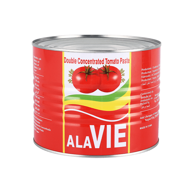 Ang 2200g dagdag na malaking kapasidad ng 2200g de -latang (madaling bukas/ matigas na bukas) Tomato paste ay dinisenyo upang matugunan ang pang-araw-araw na mga pangangailangan sa pagluluto sa bahay o para sa malakihang paggamit sa mga restawran. Ang disenyo ng malaking kapasidad na ito ay hindi lamang binabawasan ang problema ng madalas na pagbili at pag-iimbak, ngunit tinitiyak din ang kaginhawaan at ekonomiya para sa pangmatagalang paggamit. Umaasa sa malakas na teknikal na lakas ng kumpanya at advanced na kagamitan sa paggawa, pinagtibay namin ang advanced na teknolohiya ng produksyon at pinapanatili ang likas na nutrisyon ng mga kamatis, lalo na ang mataas na nilalaman ng lycopene, sa pamamagitan ng maingat na pagpili ng mga de-kalidad na kamatis, sumasailalim sa pagproseso at mahigpit na kontrol ng kalidad. Tinitiyak ng prosesong ito na ang sarsa ng kamatis ay may dalisay na lasa, maliwanag na kulay at mayaman na halaga ng nutrisyon.